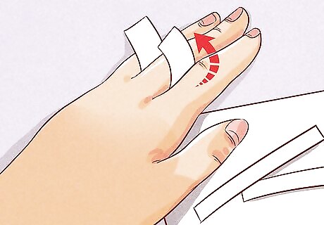 Wrap the paper around the widest part of your finger. Look at your finger to see where the widest part is, and wrap the paper once around that area. If your knuckle is the widest section of your finger, measure there so you can ensure that the ring will fit over it. Make sure the paper is snug, but don’t pull so tightly that it tears. If the paper does tear, simply cut a new strip and start over. Wait to measure your finger until it's a nice day that isn't too hot since the temperature could make your measurements fluctuate.
