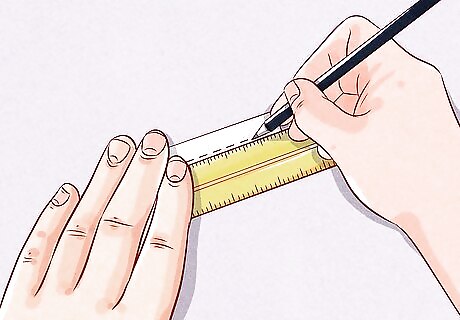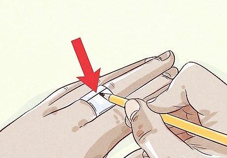 Mark where the piece of paper overlaps on your finger. Using a pen or pencil, draw a line on each part of the paper where it overlaps on your finger. You should have 2 lines that mark the circumference of your finger on the piece of paper. Tip: Have a friend help hold the paper in place while you make the marks to get an accurate measurement.