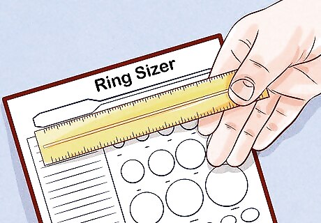 Flatten out the paper and measure the distance between the 2 lines. Unwrap the paper from your finger and flatten it as much as possible. Then, use a ruler to measure the length between the 2 lines that you marked on the paper. Depending on where you live and the company that you’re purchasing from, you may need to measure in inches or millimeters.