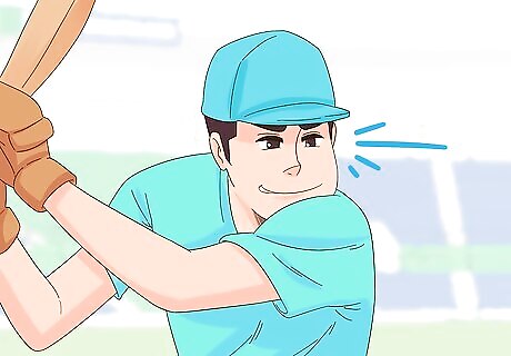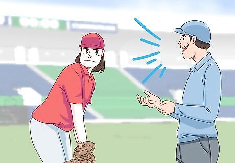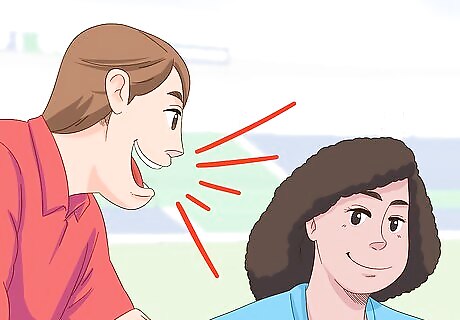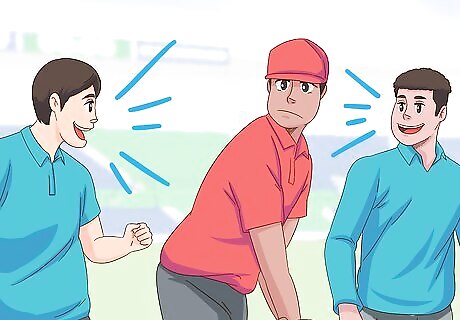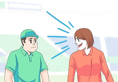 Use aggressive body language while bowling and fielding. If you’re a bowler, you’ll have an opportunity to sledge the batsmen after every ball you bowl. A great way of sledging without actually saying anything is by using your body language. Glare with steely eyes or puff out your chest as you follow through toward them. This is one area where you do need to be careful that your actions don’t drift into the realm of being physically threatening. If an umpire hears or sees you make an action that is physically threatening, they may eject you from the game. Use of body language as sledging is great for people that maybe don’t feel as comfortable actually saying things to the batsmen.