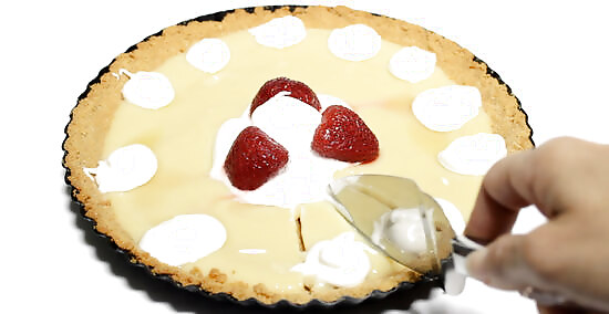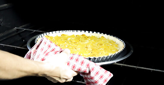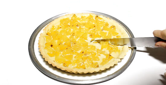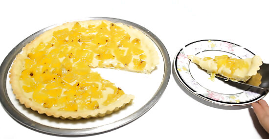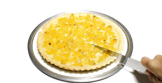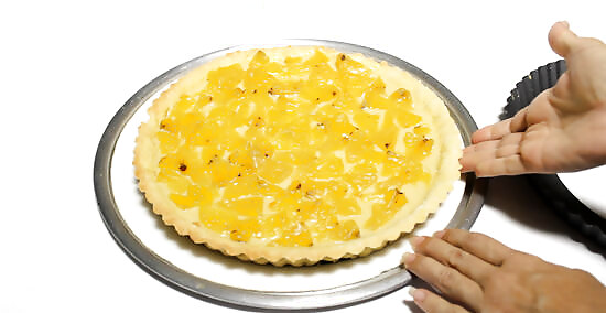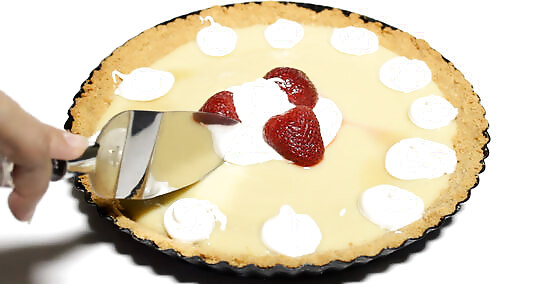 Loosen the pie and remove it from its dish. How you do this will depend on the dish that you used for the pie. Many pie/tart dishes have a bottom that you can push up which makes removing the pie really easy. If you have a glass dish, slide your pie slicer around the edge to loosen the pie, then tip the dish gently and slide the pie out of the dish. If you used a disposable aluminum dish, then use the same technique as the glass dish to remove the pie.