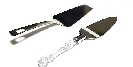 Buy a strong, metal pie server. You need to be able to make a clean and straight incision into the pie, all the way through the crust. Plastic servers tend to be more flimsy, so buy a metal one that feels nice and sturdy. The server needs to also be offset by at least 2 inches (5.1 cm). The amount of offset is the depth that the flat part of the server dips down from the handle. This is what actually allows you to get underneath the pie crust. Look for a server that has a serrated edge on one side as this can sometimes help with slicing through crust.