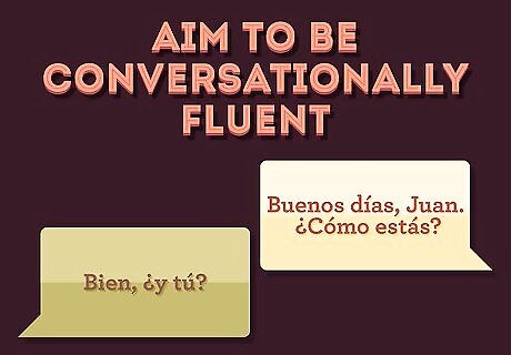 Aim to be conversationally fluent. Conversationally fluent allows you to just focus on speaking Spanish rather learning how to also write and listen. It can be overwhelming to undertake the Spanish language in its entirety. Being conversationally fluent allows you to connect with others while expressing the gist of your ideas.