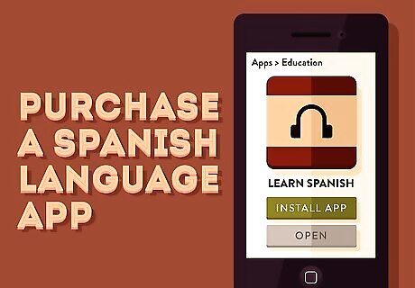 Purchase a Spanish language app. Choose from a multitude of free or purchased apps for download onto your home or mobile device. Make sure to research and read reviews to ensure that the apps has the functions that you are looking for such as creating flashcards or visual aids. Flashcards are a great way to memorize vocabulary and apps can be searched for Windows, Apple, or Android devices.