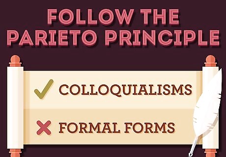 Follow the Pareto principle. This principle states that you need to learn the right words, which means that you don’t have to learn the entire language but simply learn the most important words. It’s easy to find the most important words because they will be the ones used most frequently. For example, rather than learning the formal forms of words and phrases, learn colloquialisms.