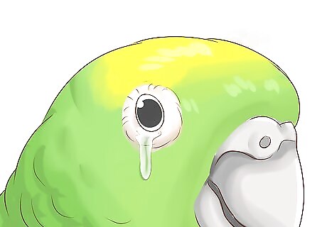 Monitor eyes that are swollen or have discharge. If you notice that your parrot’s eyes seem swollen or have any type of discharge being excreted, contact your veterinarian immediately. This is most likely a symptom of vitamin A deficiency. There may also be white spots present around the bird’s eyes. While eye issues such as these could be indicative of other problems (like conjunctivitis or respiratory problems), you should still take your bird to the vet for a checkup.