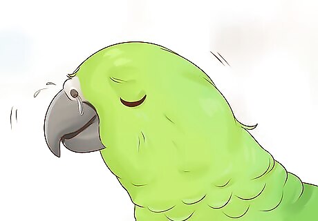 Be wary of depression or lethargy. Depression and lethargy are some of the biggest behavioral indicators that there is something wrong with your bird. If your Amazon parrot seems to have less energy or seems to sleep all the time, this may be a cause for concern – especially if these symptoms are paired with some of the other symptoms relating to vitamin A deficiency. You should also monitor your bird’s behavior to see if it refuses to fly, seems to play with its toys less than usual, or prefers to stay inside its cage rather than interacting with its owners.