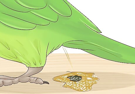 Watch for diarrhea. Vitamin A deficiency is a serious condition that can wreak havoc on a bird’s digestive track. Because of this, diarrhea is often a common side effect. Monitor your parrot’s droppings to see whether the “firm” portion of the excretion is present or not. If the droppings are all liquid, or the feces part seems more like pudding, then your bird has diarrhea. Remember that part of a bird’s poop is always liquid – this is the “urine” part of their droppings. Diarrhea depends on the solidity of the “feces” part of the droppings.