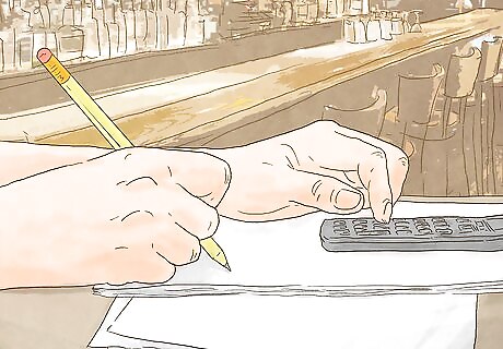 Calculate your startup costs. This is a substantial task in the business process. You may even consider hiring a business manager or accountant to assist you. You will need to figure out how much money you will need from a business loan or investment to begin your business. This way you can also know how much money you need to take in from patrons to turn a profit. Include costs for basic equipment such as: drinking glasses, sinks, storage racks, drink taps, beer and soft drink dispensing systems, coolers, freezers, ice bins, ice machines, ice picks, ice scoops, dishwashers, cabinets, and display cases/shelves. If you are serving even light food fare you need to include costs for kitchen equipment for snack preparation, sandwich making, coffee making, etc... Figure out how much you are paying for the building. You may be buying an existing bar or renting a location. Include costs of utilities (phone, electricity, heating, air conditioning, plumbing), maintenance, security systems, signage, and safety devices like smoke detectors in this. Total how much you will be spending on your initial inventory of alcohol and food. Figure out how much you will be paying your staff including bartenders, wait staff, managers, and any guest entertainers. Factor in costs for marketing, accounting assistance, retaining legal services, and insurance. Take ten percent of the total you have so far, then add that on as the cost for miscellaneous items you can't predict.
