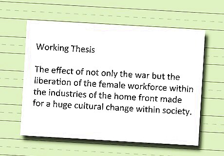 Use a “working” thesis statement. If you are having trouble with this step, or if you feel like the pressure to have a perfect thesis statement is interfering with getting started, try using a “working” thesis statement. This will enable you to move on without getting too stuck, knowing that you’re going to go back and change the thesis.