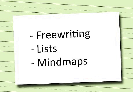 Prewrite to get ideas flowing. The best way to start an essay is to get your ideas out in a non-essay format to begin with. Prewriting can take many different forms, and you may want to experiment to find one that helps you the most. Freewriting, a process in which you just write what you are thinking about without worrying about grammar or punctuation or even your central argument, may be a good way to start generating ideas. It could also help you “find” your thesis. A simple list may be all you need. Write a list of the subtopics or specifics you want to include in the essay. A mind map may be a helpful prewriting guide for visual learners. The center of the mind map contains your main argument, or thesis, and other ideas branch off in all directions.