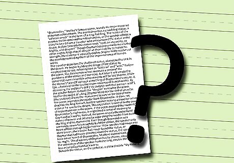 Know how to read an essay prompt. Although they vary depending on who has written them, most essay prompts include similar information. Essay prompts can seem overwhelming at first, especially if they incorporate a lot of information, but knowing what you're looking for can help you decipher them. Most prompts begin with some contextual information about the topic of the essay. While this can seem superfluous, read it carefully; it may give you a clue about how your teacher wants you to frame the topic of the essay. The "task" of the essay prompt will usually be worded with active verbs such as summarize, describe, compare, contrast, analyze and/or argue. These verbs will help you know what type of essay the prompt is asking for. Sometimes the prompt will offer a list of questions or suggestions for further thought. Read this section attentively: sometimes these questions or suggestions may just be a way to prompt your own thinking, but other times it may be required to address them all in your essay. Many prompts will conclude with a list of formatting requirements: common requirements include "12-pt font," "double-spaced," and "1-inch margins," but your prompt may also ask for others. Make sure you adhere to all of these requirements in your final draft! Failure to do so may cost you points on the essay.
