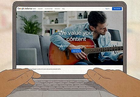 Become an affiliate marketer. There are many companies and webmasters who use affiliate programs to boost their online sales, and most of these affiliate programs are free to join. When you sign up for an affiliate program, an affiliate link with a unique affiliate ID will be assigned to you. The affiliate link is used for marketing the products of your merchant. When a visitor buys an item through your affiliate link, you earn affiliate commission. For example, if you are an affiliate marketer for Musician's Friend, an online musical instrument retailer, you can advertise their products on your site. If a person visits your site, and clicks on the link that takes them to the Musician's Friend website, and they purchase an instrument within a certain amount of time (24 hours or more, typically), you get a commission on the sale.