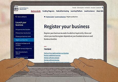 Register your business. Your business needs to be registered according to your state's laws. Choose an official business name and fill out the appropriate paperwork to make your business official. Before you register your business, it can help to have a business plan laid out. Consider your production costs, shipping costs, taxes, and web hosting fees. It might be a good idea to hire an accountant and a lawyer before starting your business so you can keep it going with no issues. Know the business regulations in your state, and be sure to comply when you get things up and running. It's possible to find business plan templates online according to your specific industry to help you get going.