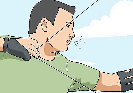 Breathe steadily when you shoot. Holding your breath during a shot is a common mistake made by beginners. What this does is reduce oxygen to your brain and also can affect your vision. Take slow, normal breaths that keep you calm but don’t cut off your oxygen. Since archery is a calm sport, maintaining even breathing will keep you calm from start to finish of the shot. A good practice is to exhale as you release the string, so that your breath and the arrow are in unison.