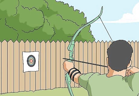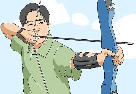 Practice as often as you can. If you want to start archery as a casual hobby that you pick up once in awhile, that’s fine, but don’t expect to improve much. Becoming a proficient archer takes consistent practice. If you can’t practice everyday, set a goal to practice a few times a week. Especially at the beginning, your muscles may get sore from the new strain of archery, so make sure you don’t overdo it. Give yourself time to rest in between shooting sessions. If you can practice consistently for at least the first month or so after you learn, you’ll have a better chance of getting the form down. Then your practice could slow down a little.