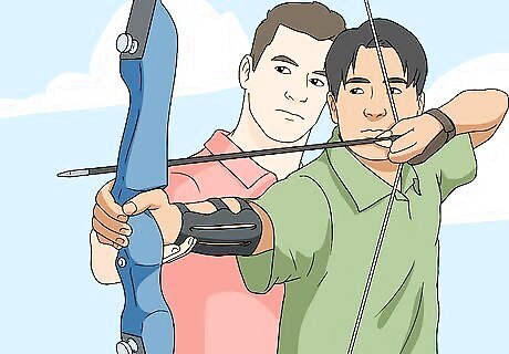 Learn from a live person. While you can watch videos and read about the proper techniques, nothing beats learning from an experienced archer. They can help you position yourself properly and check your form and tell you how to adjust. If you have a friend or family member who has been shooting for a while, talk to them and ask if they could give you some beginner lessons. Archery clubs often have classes for beginners, which is the best way to learn when you have no experience.