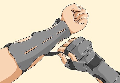 Use safety equipment. Even experienced archers often use arm guards and shooting gloves/finger tabs. An armguard will protect you from the snap of the string, while a shooting glove/tab will protect your fingers from the strain of pulling the string back. Besides the safety aspects, these are also good for accuracy and smooth shots. The armguard keeps your clothes from catching on the string. The glove aids a smooth release of the string. There is no shame in using help and taking extra precaution when you first start out. When you get comfortable, you can decide to stop using safety equipment if you want. A chest guard is another recommended piece of safety equipment. It goes across the shoulder of the arm that holds the bow. It serves to flatten your clothing so the string doesn’t snag on them. If you are shooting in the woods, or around other shooters, it’s important to wear bright clothing, usually orange, to make yourself highly visible to reduce shooting accidents.