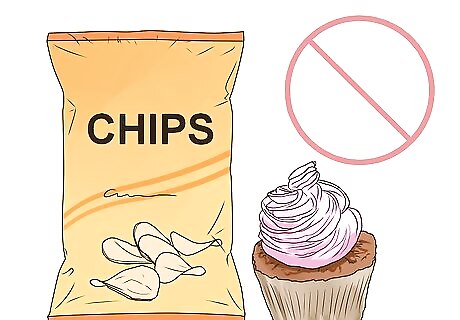 Avoid junk food. While you may be tempted to enjoy your weekend by eating junk food or fast food, overindulging can leave you feeling icky and tired and make it harder to enjoy your time off. Ultimately, indulging in junk food during the weekend is counterproductive to your overall health and well-being. Try not to eat lots of snack foods, like chips or pastries. Stay away from fast food entirely during the weekend. Focus on eating vegetables, fruits, and whole grains. If you feel like snacking, swap out junk food for healthy options, like nuts, berries, or smoothies. Drink lots of water, juice without added sugar, or smoothies.