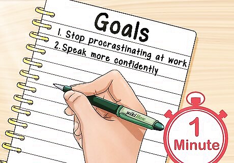 Remember what you want to achieve. Remind yourself of all the ways you hope your life will improve by sticking to a particular decision. Try making a list and putting it somewhere you’ll see it often. You can also take a minute to write down your goals every morning. For instance, maybe you want to stop procrastinating so you’re less stressed at work. Make a list of ways this will benefit you, like speaking up more confidently in meetings, and put it on your office wall.