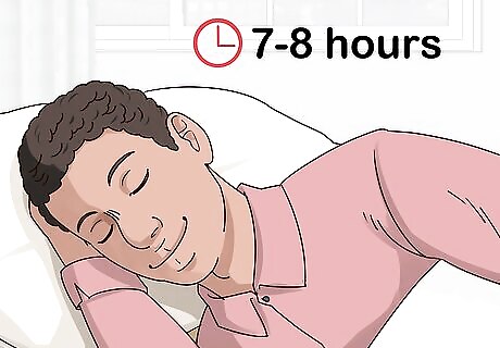 Get enough rest. It’s harder to stick to a course of action when you’re tired, overworked, and grouchy. Avoid this by getting enough sleep and pacing yourself as you work. Aim to get 7 to 9 hours of sleep every night, and take short breaks at regular intervals during the day. Practice good sleep hygiene by shutting down electronics at least an hour before bed. Do something relaxing, like taking a warm bath or shower or listening to soothing music. Shut off all the lights in your room and lower the temperature to sleep most comfortably.