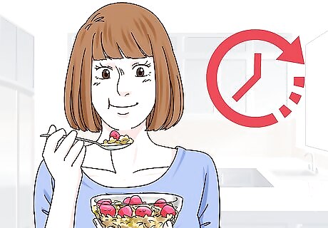 Eat at regular intervals. Keep your blood sugar and energy levels steady by eating healthy meals and snacks throughout the day. Choose foods that provide a slow release of energy, like whole grains. Some researchers think that willpower uses up glucose. This could explain why people make more questionable decisions when they’re hungry. Snacks are a great way to keep energy up between meals. Go for healthy but convenient choices like apples, cheese sticks, or a handful of nuts.