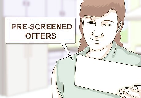 Stop other credit offers. Using the above website won’t stop all offers, because some card issuers get their information from sources other than the national credit bureaus. You can stop other offers by contacting the Direct Marketing Association and signing up for their opt-out list. Visit the DMA’s website here: https://www.dmachoice.org/. You will have to register by clicking on the “Get Started” button. It costs $2 to sign up for the list. At the website, click “Remove My Name” or go through the listing of businesses and remove yourself from them individually. Alternately, you can use mail-in registration. Download the form or write a letter with your name and address to DMAchoice, Data & Marketing Association, P.O. Box 643, Carmel, NY 10512. It costs $3 to use the mail-in option. It also takes longer to process. If you continue to receive offers from financial companies, you’ll need to call them directly and ask them to stop mailing you offers.