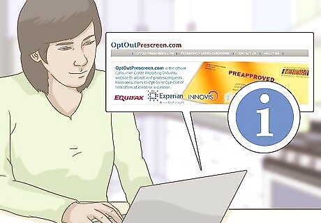 Visit the website. You can opt out of receiving pre-screened offers for credit cards by visiting https://www.optoutprescreen.com. This website was created by the nation’s major credit bureaus (Experian, Equifax, TransUnion) and is approved by the Federal Trade Commission.