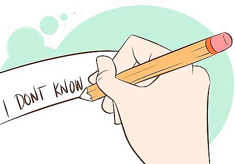 Consider how often you say "I don't know". Keep a journal or log of how often you use this phrase. It doesn't have to be elaborate--just somehow mark every time. The back on a notebook, in a notepad, or whatever works for you. The idea is not to somehow feel terrible about yourself; by knowing how often you do this behavior, you can both become more aware of your words as well as track your successful progress over time. Remember: focus on awareness of this habit...you do not have to punish yourself in order to break this pattern. It can be helpful to make a note of when, where, and why you said "I don't know". It can help to see patterns. For example: To a certain person more than anyone else. When you feel rushed or stressed In math class When it comes time to choose something for lunch.