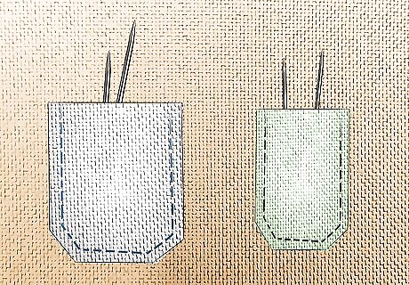 Sew pockets onto backing to create your own hanging organizer. Hanging storage is extremely convenient, but you don't necessarily have to buy one that's pre-made. Cut out squares of fabric a little larger than your needles and sew them onto a pretty backing fabric, leaving the top side open to create a pocket. Making your own organizer allows you to customize the sizes of the pockets to fit your preference for needles.