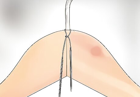 Loop needles around the neck of a clothes hanger for another hanging option. If you only have a few needles, a clothes hanger can be the perfect solution. Once the needles are looped around the clothes hanger, you can hang it from a hook on the back of the door, or store it in a closet. Wrap the clothes hanger with ribbon to give this look a decorative touch.