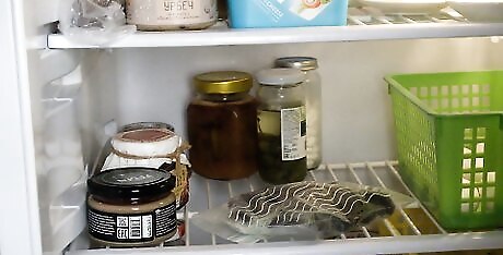 Store the jerky in the fridge for up to 2 weeks. Place your bag or container of jerky into the refrigerator if you're concerned that your pantry is hot and the jerky would spoil. Keep in mind that once you open the bag or container of jerky, you should eat it within 1 week since you've introduced oxygen into the bag or container. If you don't like eating cold jerky, take it out of the fridge and set it on the counter for about 30 minutes so it comes to room temperature.
