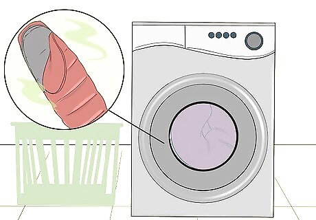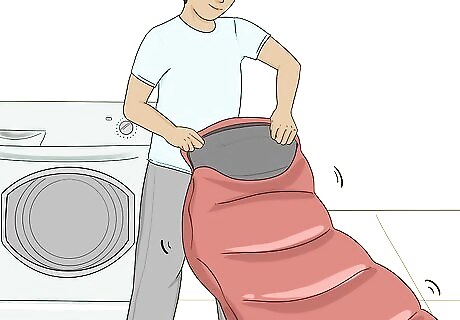 Wash your bag in a front-loading machine if it smells bad or is super dirty. Don’t wash your sleeping bag after every trip or it will lose its loft (the fluffiness that keeps you warm) due to excessive washing. Use warm water and mild laundry detergent and wash it on the gentle cycle.Warning: Never dry clean a sleeping bag because the harsh chemicals will ruin it. It’s important to only use a front-loading washing machine because the agitators in top-loading home washing machines can twist and damage the bag. If you don’t have a front-loading washing machine at home, then take your bag to a laundromat and use one of the big ones. You can wash your bag about once a year, even if it’s not dirty, to help restore the loft if it begins to lose its fluffiness after continued use.