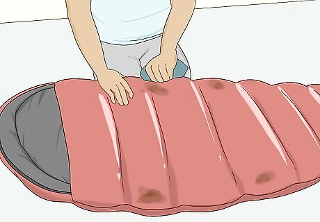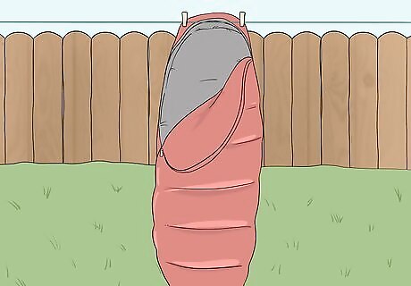 Shake the sleeping bag vigorously to fluff it up before storing it. Hold the sleeping bag with both hands at one end and shake it in the air like you are putting a sheet on a bed. This will help evenly distribute all the insulation and restore the loft of the bag before you put it away. This is especially important if you had your sleeping bag stored in a compression sack during a trip. If you compress a sleeping bag during storage, then it will lose its loft over time.