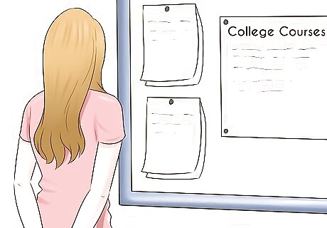 Audit a college course. While you are in high school, try auditing a college course or taking a college course at a local community college. This will help you get a feel for the coursework associated with a particular major and career path. Gaining this understanding can help alleviate stress associated with choosing a career path. It can also help solidify or change your decision about a career path. You can also take high school electives related to your intended major whenever possible.