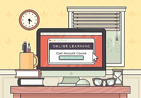 Take a cost accounting course online. Run a quick search for “online cost accounting course” to pull up a list of potential options. Before you sign up, check to make sure that the course you’re looking at is offered by either an accredited institution or a reputable third-party company. One of these courses will expose you to the same sorts of principles and procedures that you would learn in an academic setting. Many of these pay-by-lesson courses are relatively inexpensive, while some open-source resources may even be completely free. Web-based courses can serve as a convenient, low-cost alternative to traditional instruction if you don’t have the time or budget to go to college.