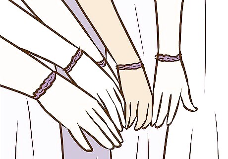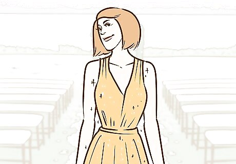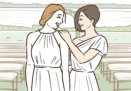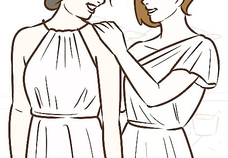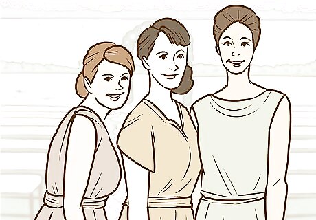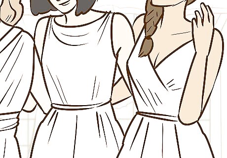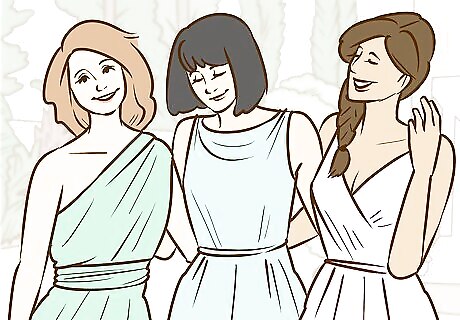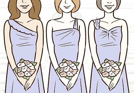 Encourage similar styles of dresses. If you're going with slightly different colors, ask that everyone wear a similar style. This will help make the party look uniform, even if everyone is going with different shades or colors. For example, you can request everyone wear form-fitted dresses, longer dresses, or dresses with a particular neckline.