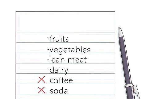 Help your family member create a nutrition plan. It is important that people with autoimmune diseases eat a balanced diet of whole foods such as vegetables, fruits, whole grains, lean meats, and healthy fats. Berries, dairy products, cruciferous vegetables, and foods containing vitamin D such as salmon, eggs, and mushrooms are all good choices. Sit down and make a list of healthy meals the family member can enjoy regularly. Use this list to work out a weekly meal plan that includes shopping and cooking. Caffeine can aggravate symptoms, so you want to encourage your family member to limit or avoid foods that contain caffeine. These foods include coffee, tea, soda, and chocolate. Seek the advice of a dietitian if the family member has specific dietary needs.