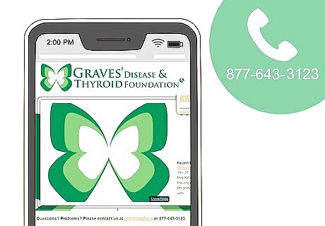 Learn about support networks for families and people with Graves’ disease. Try contacting the Graves' Disease & Thyroid Foundation. Established in 1990, this nonprofit organization provides services to patients, education about Graves’ disease, and a support community for patients and caregivers alike. You can reach the foundation by phone at 1-877-643-3123 or visit their website at https://www.gdatf.org/