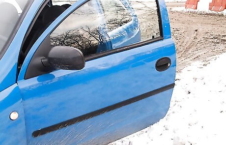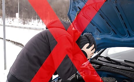 Don't try to escape if it is not simple. Officers recommend that people remain in the car if no easy escape is available, or if help isn't within one hundred yards. Do not try to navigate unless you are wet and the car engine isn't starting. At this point, your wet clothes will most likely freeze, and you will be risking hypothermia and freezing to death.