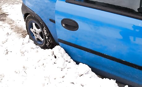 Try to get out. Obviously, getting out of a car submerged in snow is not the simplest of tasks. Before you even begin to make your escape, view the circumstances. Are you entirely submerged, or is the hood of the car over the snow? Can you see outside? Is your car right-side up? These are the first questions you should ask yourself before attempting any sort of plan. If you can see outside, and you are positive that the car is nowhere near halfway submerged, turn on the engine. Let the wheels spin for about ten seconds. If the car is not moving, stop turning the wheels. This will create a bowl of ice that is shaped like a tire, which will make it nearly impossible to escape. Estimate how submerged you are. If you are more than three feet under snow; which is unlikely; digging your way out is not a plan that will have a high chance of working. If you are a very short distance from the surface, try digging out. Be extremely careful while digging, as the tunnel can easily cave in and suffocate you. If the door of your car does not open easily, do not try to force it open. It could possibly spill a load of snow into the car, which will do more bad than good. Try rocking the car back and forth. With the engine on, switch back and forth between reverse and forward along with moving around the vehicle to keep it moving. As soon as the vehicle shifts, switch the engine to forward and try to drive out. If this doesn't work for twenty minutes, stop and turn off the engine. This will do better with a group, and not a single person.