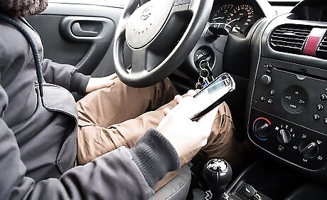 Look for a cellphone. Passengers in the car will most likely have a cellphone with them. Call a car towing company, or someone who can help you. If you have trouble getting service, try pressing the antenna of the phone against the radio while it is playing. Most cellphones will follow the radio's path of service and will get a few bars. Make sure that you give an extremely detailed description of where you are. You will not be clearly visible if you are submerged, and they may drive right past you. Be careful who you call if the phone battery is depleted.