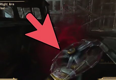 Lock onto the champion with V.A.T.S. Aim for the weapon and fire.
