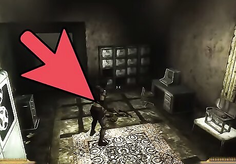 Go into the arena. If you've managed to find any Rad-X, take it immediately. Stay back as far as you can; the radiation affects you immediately. If you found RadAway, do not take it immediately, as it only works for curing existing radiation poisoning. Wait until later in the fight.