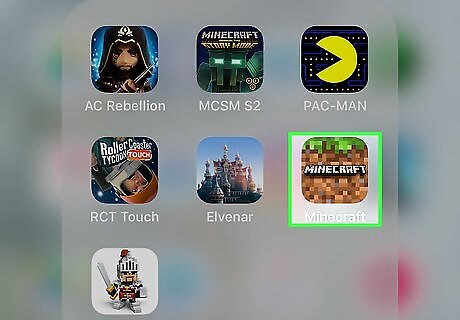 Tap the Minecraft app. It will take you to the main menu after it is finished loading. It should say Minecraft at the top, the version in the middle and three buttons at the bottom: Play, Marketplace, and Options. Don’t touch any of the options before you start playing.