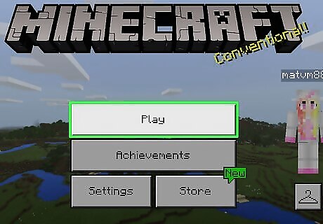 Click “Play”. The app will play its signature "click" sound and take you a panel with three tabs: Worlds, Friends, and Servers. If Worlds is not selected, select it. Click on the button at the top that says Create New World; "another" new panel will appear. Don't bother about any of the tabs this time. Just enter what you want your world to be named in the World Name textbox. If you leave it empty, it will automatically be called My World, as you can see. You can also type in a seed, which is basically a code that tells Minecraft what world to load. Since this is probably your first time playing, you should leave this textbox empty as Minecraft will generate a random seed if you do so.