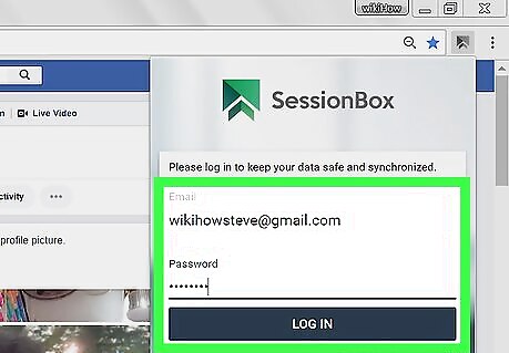 Click the SessionBox icon on the top-right corner of your browser. You can find this button on the extensions bar next to the address bar in the upper-right corner of Chrome. It looks like an upward arrowhead icon in front of a square. This will open the SessionBox login form in a pop-up window.