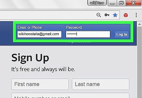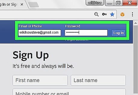 Log into your first account. Enter your email address or phone number and your password into Facebook's login form on the top-right corner of the home page, then click Log In. This account will be saved as your first session under Facebook in the SessionBox window.