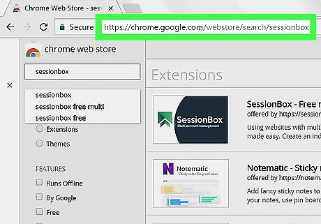 Open the SessionBox app on the Chrome web store. Go to the web store page in your browser, and use the search box on the top-left to find the SessionBox extension.