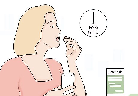 Swallow 1 to 2 capsules of extra-strength Robitussin every 12 hours. High-strength formulas containing 30 to 60 mg of dextromethorphan and 600 to 1,200 mg of guaifenesin should only be taken once every 12 hours. For instance, you might take the first dose at breakfast around 8:30 AM to help you get through the day and the second dose at 8:00 PM to help you sleep. Don’t take more than 4 capsules of high-strength Robitussin within a period of 24 hours. Talk to your doctor if your cough persists or worsens over the course of 7 days.